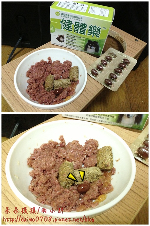 當初呆呆在食用的某牌的保健食品(是針對異位性皮膚炎的)是液體油狀,每次給呆呆食用時,必須使用針筒的方式給呆呆吃,不然嘴邊毛都是油油,且因為魚油的關係直接食用的話嘴邊毛都會有著很重的魚腥味,所以後來我都用針筒的方式,不過呆呆很不喜歡那味道,每次食用時他都會偷偷吐出來導致嘴邊毛是油的....在餵食上很麻煩;不過健體樂沒有這煩惱耶,呆呆不但能接受健體樂的味道外,還很喜歡,健體樂是做成膠囊狀的,如果毛寶貝本身能接受膠囊狀直接食用的話,就不需要去刺破它了,呆呆現在每天都是直接食用健體樂,也因為他接受健體樂的味道,我就不用去煩惱怎麼去餵食了,也不會讓嘴邊毛油油的或是濕濕的,不過有一天...................