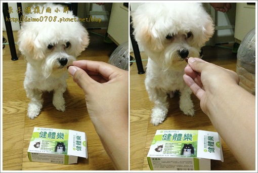因為第一天觀察他沒有排斥健體樂的味道,所以第二天就直接讓他吃看看,結果他一點也不排斥,反而很愛,一天吃兩顆(調整期),吃完兩顆又跑來跟我要..........我以為他會不喜歡吃我又得傷腦筋了,沒想到呆呆接受這味道
