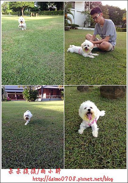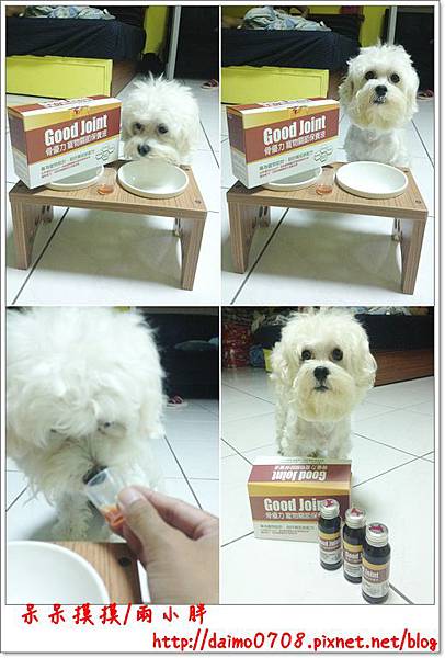 服用【現代百益康】骨優力關節保養液,快一個月了(有把之前服用的類似保健停掉了),成效蠻明顯;帶去跑跑時,他開始會跟著我們跑,但一開始距離沒有很遠,不過願意跑起來我們就很開心了,看到他跑跑後的開心笑容,看了我們也都開心了,漸漸的一次、兩次的進步,呆呆常常在家在草原跟摸摸玩起追逐賽了,好幾次摸摸一點也不想玩,呆呆卻一直弄頭去嚕摸摸,看了我都快笑死了,不過看到這兩隻這樣玩耍,我很開心,因為呆呆進步很多,不再是天天趴在那裡睡覺或是趴著不想動雙眼看摸摸玩了!!!