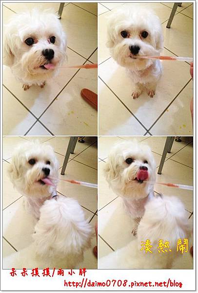 第一次給呆呆聞味道嚐嚐看,呆呆沒有出現排斥狀況且很喜歡喝,每次從冰箱拿出來,他都會搖尾巴跑來我面前呢!! 摸摸看到呆呆喝起來很好喝,每次都跑來湊熱鬧!! 哈哈哈哈;呆呆以前是個活潑亂跳的小孩,但從三歲開始他不在跳上跳下,帶出去跑跑,以前很開心,現在都趴在樹陰下休息,看著摸摸自己再跑,其實我一直都很擔心!!!
